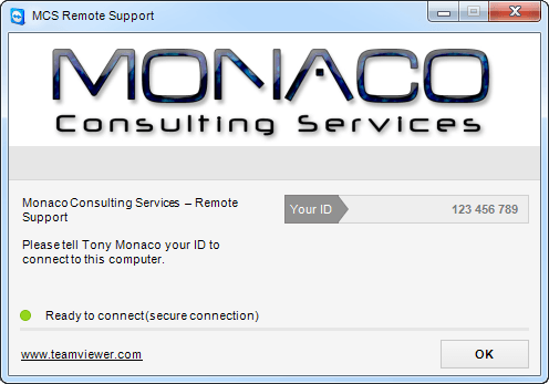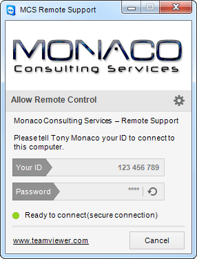 Never provide your TeamViewer ID or password to anyone other than Tony Monaco.